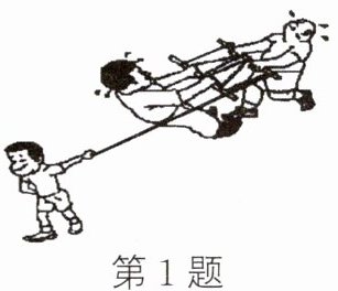 1. 滑轮组既省____,又可改变____;使用滑轮组时有n段绳子拉住动滑轮,每段绳子的拉力是物体重量的____,绳子移动的距离是物体移动距离的____倍。如图所示,用一根结实的绳子在两根光滑木棒上绕几圈,小朋友用力一拉,两位大力士竟撞在一起了,这幅漫画说明了____。