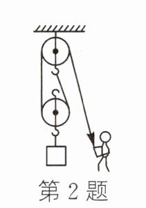 2. 如图所示,人向下拉绳提升重物,已知物体重400N,动滑轮重60N,不计绳重及摩擦,将重物匀速提升0.5m,人需用的拉力为____N,绳子自由端移动的距离为____m。