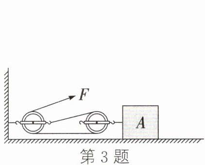 3. 如图所示,一位同学用滑轮组拉着重450N的物体A运动,物体A与地面间的摩擦力为90N,绳端拉力为F,物体A在5s内在水平面上匀速前进1m,不计绳重、滑轮重和其他摩擦,下列说法正确的是()