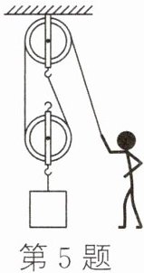 5. 如图所示,货物重600N,动滑轮重10N。如果每段绳子能承担的最大拉力为500N,人的重力足够大。