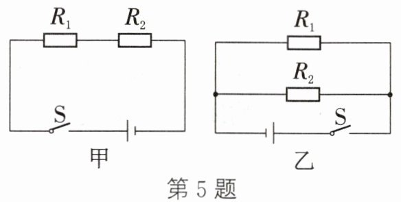 5. 如图所示的电路中,电阻阻值$R_{1}>R_{2}$。闭合开关S后,下列说法正确的是()