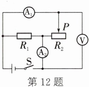 12. (2024·大庆)如图所示的电路中,电源电压恒定,闭合开关S后,滑动变阻器的滑片P向右移动的过程中,下列说法正确的是()