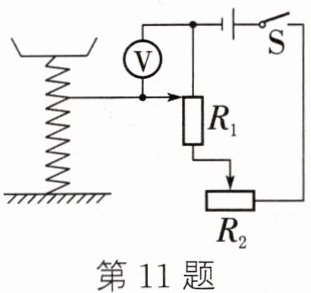 11. (2024·陕西)小明在课外实践活动中设计了一款台秤,其显示端由电压表表盘改装而成,电路设计如图所示。闭合开关S,关于该台秤的分析正确的是()