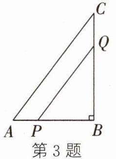 3. 如图,在$\triangle ABC$中,$∠B= 90^{\circ },AB= 6$cm,$BC= 8$cm,点$P从点A开始沿AB边向点B$以1cm/s的速度运动,点$Q从点B开始沿BC边向点C$以2cm/s的速度移动,如果$P$、$Q分别从A$、$B$同时出发,那么