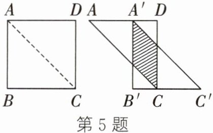 5. 如图,将边长为2cm的正方形$ABCD沿其对角线AC$剪开,再把$\triangle ABC沿着AD$方向平移,得到$\triangle A'B'C'$.若两个三角形重叠部分的面积为1$cm^{2}$,则它移动的距离$AA'$等于 (