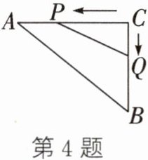 4. 如图,在$\triangle ABC$中,$∠C= 90^{\circ },BC= 30$cm,$AC= 40$cm,点$P从点C开始沿CA$边以4cm/s的速度向点$A$移动,同时,另一点$Q由点C$开始以3cm/s的速度沿着$CB边向点B$移动,求几秒钟后,$\triangle PCQ的面积等于\triangle ABC面积的\frac {1}{4}$?