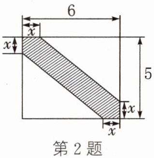 2. 如图所示,某景区内有一块长方形油菜花田地(图中单位:m),现在其中修建一条观花道(阴影部分)供游人赏花,要求观花道的面积占长方形油菜花田地面面积的$\frac {1}{3}$.设观花道的直角边(如图所示)为$x$m,则$x$的值为 (