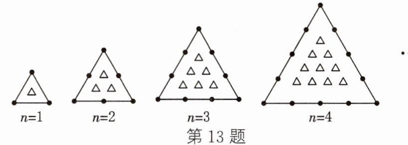 13. 观察下列图形的排列规律,当$n= $