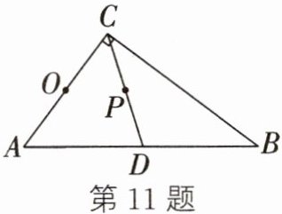 11. 如图,在$Rt\triangle ABC$中,$\angle ACB= 90^{\circ}$,$AC= 6$,$AB= 10$,CD是斜边AB上的中线,以AC为直径作$\odot O$,设线段CD的中点为P,则点P与$\odot O$的位置关系是