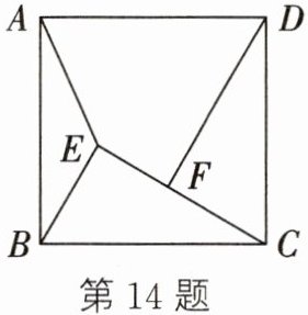 14. 如图,E是菱形ABCD内一点,$\angle BEC= 90^{\circ}$,$DF\perp CE$,垂足为F,且$DF= CE$,连接AE。