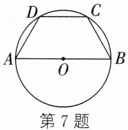 7. 如图,$\odot O的半径为1cm$,$AB$是直径,$C$、$D是\odot O$上的两点,且$\widehat {AD}= \widehat {DC}= \widehat {CB}$,则四边形$ABCD$的周长为 (