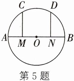 5. 如图,已知$AB是\odot O$的直径,$M$、$N分别是AO$、$BO$的中点,$CM⊥AB$,$DN⊥AB$. 求证:$\widehat {AC}= \widehat {BD}$.