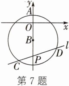 7. 如图,圆心在$y$轴的负半轴上,半径为$5的\odot B与y轴的正半轴交于点A(0,1)$,过点$P(0,-7)的直线l与\odot B相交于C$、$D$两点。则弦$CD$长的所有可能的整数值有(