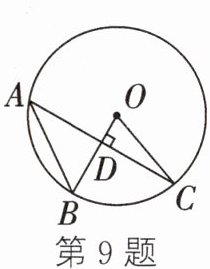 9. 如图,A、B、C三点在$\odot O$上,$AC⊥BO$于点D,$∠B= 55^{\circ }$,则$∠BOC$的度数是____