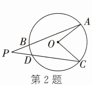 2. 如图,AB、CD是$\odot O$的弦,延长AB、CD相交于点P.已知$∠P= 30^{\circ },∠AOC= 80^{\circ }$,则$\widehat {BD}$的度数是 (