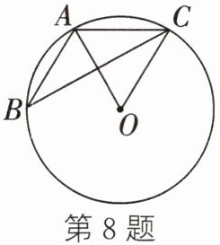 8. 如图,$△ABC$的顶点A、B、C均在$\odot O$上,若$∠ABC+∠AOC= 75^{\circ }$,则$∠OAC$的度数是 (