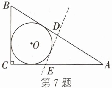 7. 如图,在一张Rt△ABC纸片中,∠ACB= 90°,BC= 5,AC= 12,⊙O是它的内切圆.小明用剪刀沿着⊙O的切线DE剪下一块三角形ADE,则△ADE的周长为(