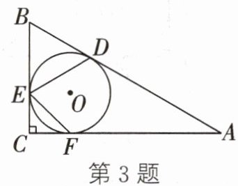 3. 如图,在Rt△ABC中,∠C= 90°,∠B= 60°,内切圆⊙O与边AB、BC、CA分别相切于点D、E、F,则∠DEF的度数为