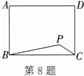 8. 如图,在矩形ABCD内有一动点P,且∠BPC = 135°,AB = 3,BC = 4,则AP长的最小值为