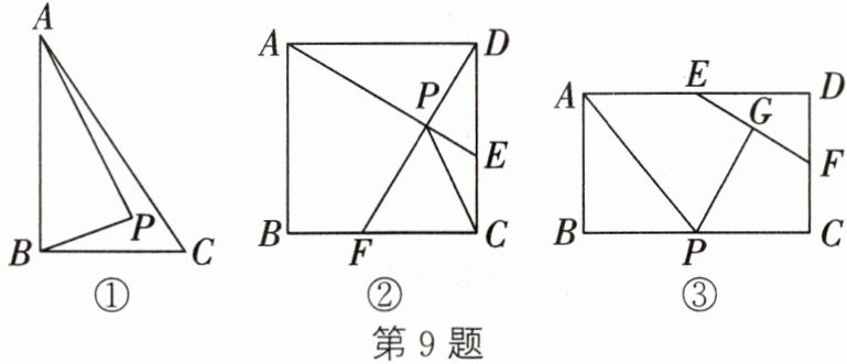 (3) 如图③,在矩形ABCD中,AB = 2,AD = 3,点E、F分别为AD、DC边上的点,且EF = 2,点G为EF的中点,点P为BC上一动点,则PA + PG的最小值为多少?