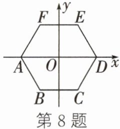 8. 如图,将正六边形ABCDEF放在平面直角坐标系中,中心与坐标原点O重合.若点A的坐标为$(-1,0)$,则点C的坐标为