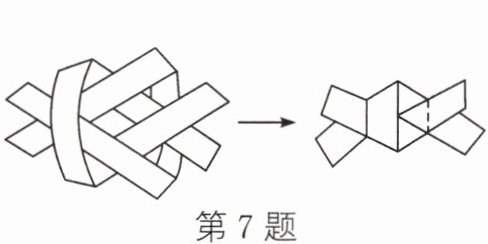 7. 如图,取两根等宽的纸带折叠穿插、拉紧,可得边长为2的正六边形,则原来的纸带宽为 (