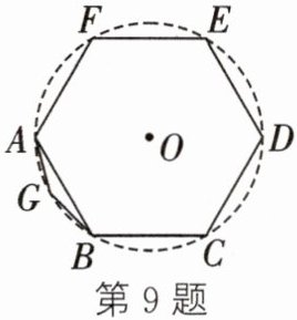 9. 如图,借助圆,易画出正六边形;取每段弧的中点,得正十二边形.若$AB= 3cm$,则完善后的正十二边形的面积为