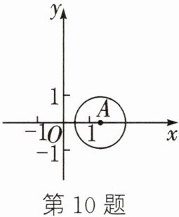 10. 如图,在平面直角坐标系$xOy$中,以点$A(\sqrt{2},0)$为圆心,$1$为半径画圆。将$\odot A绕点O逆时针旋转\alpha(0^{\circ}<\alpha<180^{\circ})得到\odot A'$,使得$\odot A'与y$轴相切,则$\alpha$的度数是