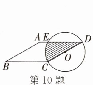 10. 如图,在$□ ABCD$中,$AB < AD$,$\angle A = 150^{\circ}$,$CD = 4$,以CD为直径的$\odot O$交AD于点E,则图中阴影部分的面积为
