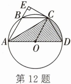 12. 如图,四边形ABCD内接于$\odot O$,AD为直径,过点C作$CE \perp AB$于点E,$OC \perp CE$,连接AC.