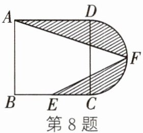 8. 如图,在正方形ABCD中,$AB = 12$,E为BC的中点,以CD为直径作半圆CFD,F为半圆圆弧的中点,连接AF、EF,则图中阴影部分的面积是(