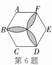 6. 如图,分别以正六边形 $ ABCDEF $ 的顶点 $ A $、$ C $、$ E $ 为圆心、边长为半径作弧,构成了阴影部分的“三叶草”图案. 若该正六边形的边长是 2,则“三叶草”的面积是