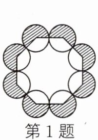 1. 如图,把八个等圆按相邻两两外切摆放,其圆心连线构成一个正八边形,设正八边形内侧八个扇形(无阴影部分)面积之和为 $ S_{1} $,正八边形外侧八个扇形(阴影部分)面积之和为 $ S_{2} $,则 $ \frac{S_{1}}{S_{2}} $的值为 (