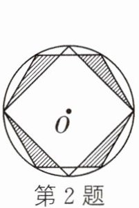 2. 如图,在半径为 2 的 $ \odot O $ 中,有两个顶点重合的内接正四边形与正六边形,则阴影部分的面积为