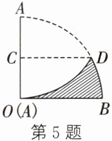 5. 如图,一张扇形纸片的圆心角为 $ 90^{\circ} $,半径为 6. 将这张扇形纸片折叠,使点 $ A $ 与 $ O $ 恰好重合,折痕为 $ CD $,则阴影部分的面积为 (