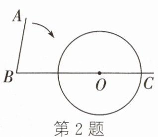 2. 如图,$∠ABC= 80^{\circ }$,O为射线BC上一点,以点O为圆心,$\frac {1}{2}OB长为半径作\odot O$,要使射线BA与$\odot O$相切,应将射线BA绕点B按顺时针方向旋转(