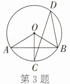 3. (2024·重庆)如图,AB是$\odot O$的弦,$OC⊥AB交\odot O$于点C,点D是$\odot O$上一点,连接BD、CD.若$∠D= 28^{\circ }$,则$∠OAB$的度数为(