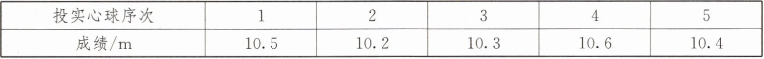 (m)。答:该同学这5次投实心球的平均成绩为10.4
