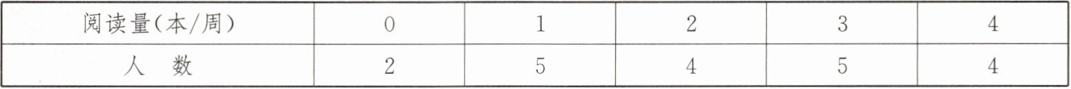 1. 小明为了解本班同学一周课外书的阅读量,随机抽取班上20名同学进行调查,调查结果如下表,那么这20名同学该周课外书阅读量的平均数是 (