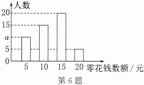 6. 某教师为了对学生零花钱的使用进行教育指导,对全班50名学生每人一周内的零花钱数额进行了调查统计,并绘制了统计表及如图所示的统计图.