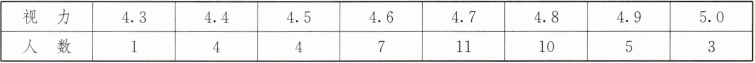 2. (2024·扬州)第8个全国近视防控宣传教育月的主题是“有效减少近视发生,共同守护光明未来”.某校积极响应,开展视力检查.某班45名同学视力检查数据如下表: