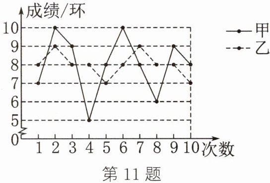 11. 要从甲、乙两名同学中选出一名代表班级参加射击比赛.如图是两人最近10次射击训练成绩的折线统计图.