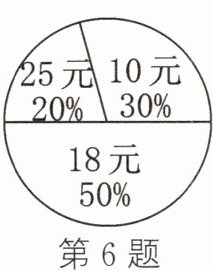 6. 某餐厅供应单价为10元、18元、25元三种价格的抓饭,如图是该餐厅某月销售抓饭情况的扇形统计图,根据该统计图可算得该餐厅销售抓饭的平均单价为