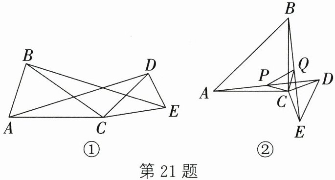 21.如图①,$CA = CB$,$CD = CE$,$\angle ACB= \angle DCE= \alpha$。
