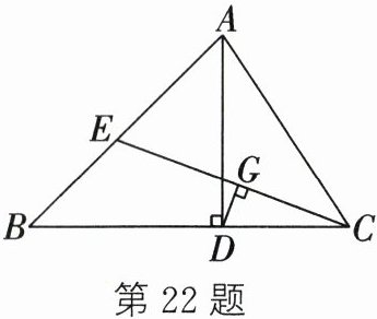 22.如图,在$\triangle ABC$中,AD是高,CE是中线,$DC = BE$,$DG\perp CE$于G。求证: