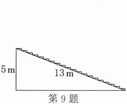 9. 如图,在一个高为5m、长为13m的楼梯表面铺地毯,则地毯长度至少应是
