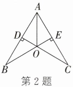 2. 如图,$CD⊥AB$于点D,$BE⊥AC$于点E,CD、BE交于点O,且AO平分$∠BAC$,则图中的全等三角形共有(