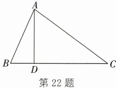 22. 如图,一棵大树$AD$两侧各有一条斜拉的绳子,大致如图所示,李明想用所学知识测量大树$AD$的高度,他从工作人员处了解到绳子$AB$的长为13m,$AC$的长为20m,然后用米尺测得$B$、$C$之间的距离为21m,已知$B$、$C$、$D$在一条直线上,$AD\perp BC$,求大树的高$AD$.