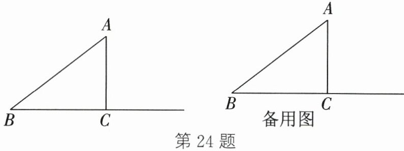 24. 如图,在$\triangle ABC$中,$∠ACB= 90^{\circ}$,$AB= 5cm$,$AC= 3cm$,动点$P从点B出发沿射线BC$以每秒1cm的速度运动,设运动的时间为$t$秒.