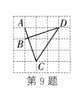 9. 如图,正方形网格中,点$A$、$B$、$C$、$D$均在格点上,则$∠ACD+∠BDC= $